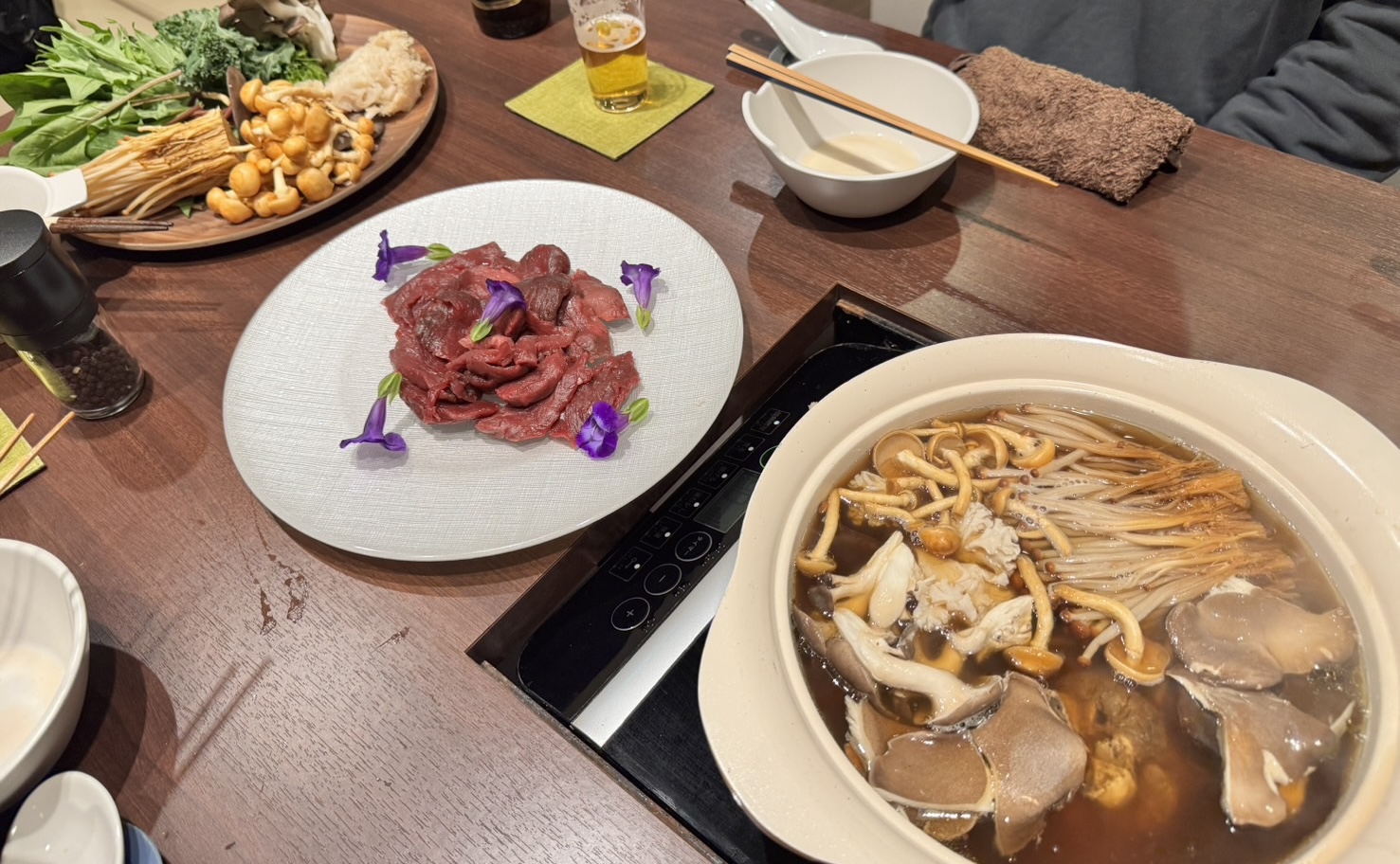 (今年の忘年会は、珍しいダチョウ肉にしました。美味しかった!)